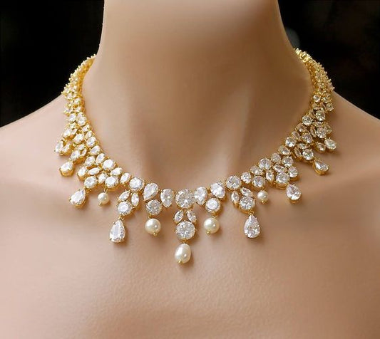 Bria - Elegant Timeless cz pearl drop bridal necklace set