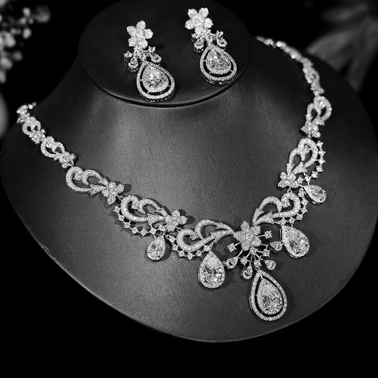 Clara - Timeless crystal vine pearl drop bridal necklace set