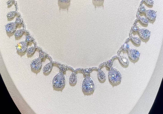 Debora - Elegant cz tear drop crystal bridal necklace set