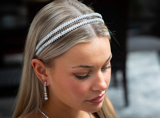Dayana - Double row silver crystal headband