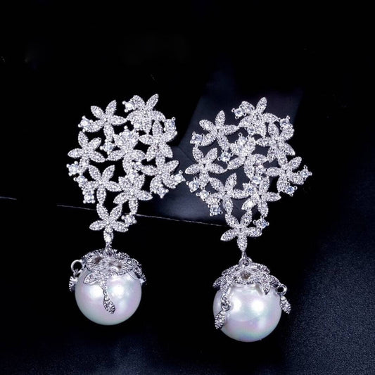 Fiora - Pearl and Swarovski Crystal bridal floral hairvine