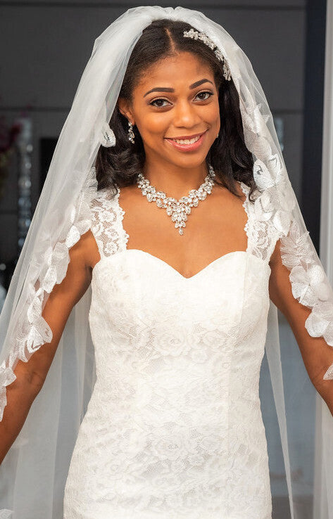Katalina – Beaded crystal and pearl edge cathedral wedding veil