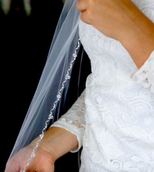 Katalina – Beaded crystal and pearl edge fingertip wedding veil