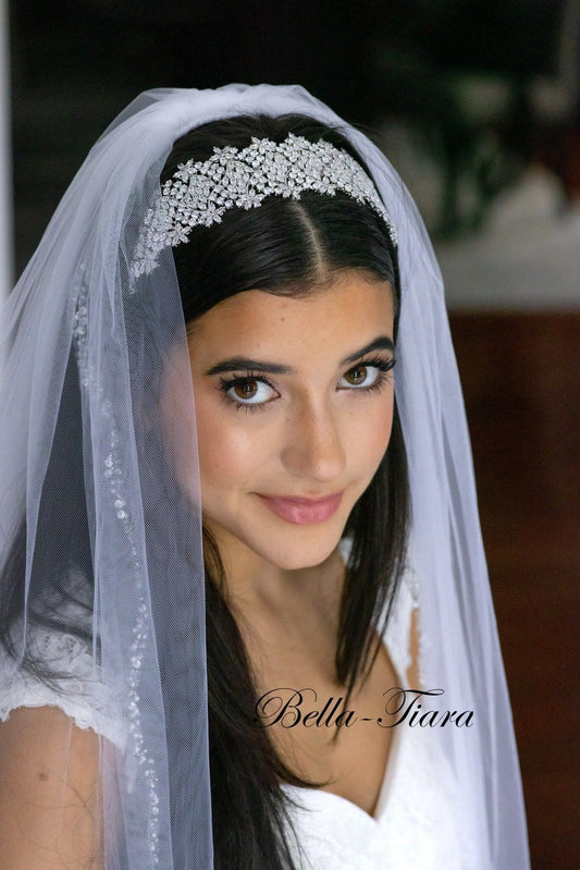 Katalina – Beaded pearl and crystal edge 2 tier veil