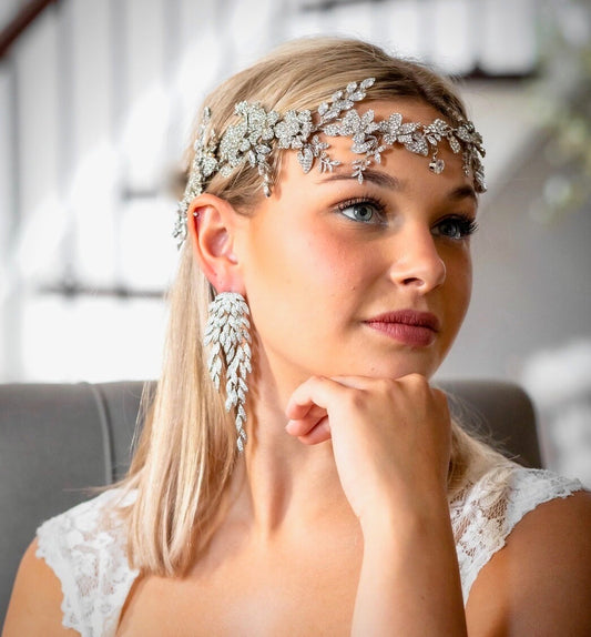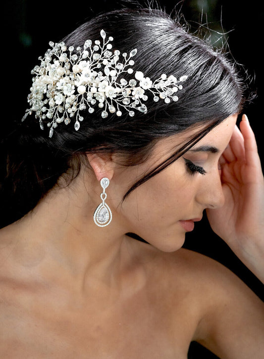 Kienna - Silver Swarovski Crystal and off white pearl wedding Tiara