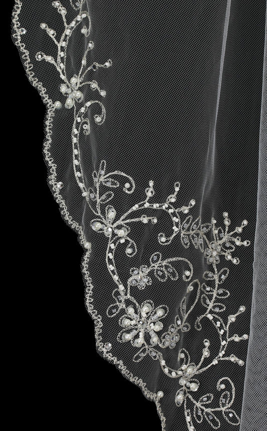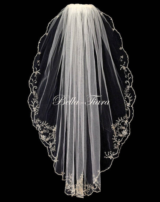 Kate – Exquisite Ivory scalloped crystal Beaded wedding veil