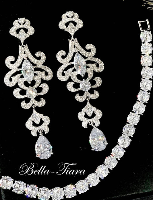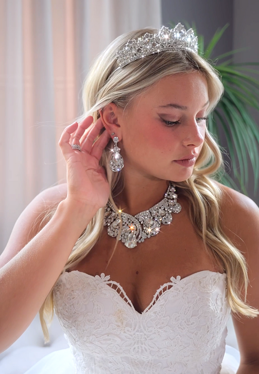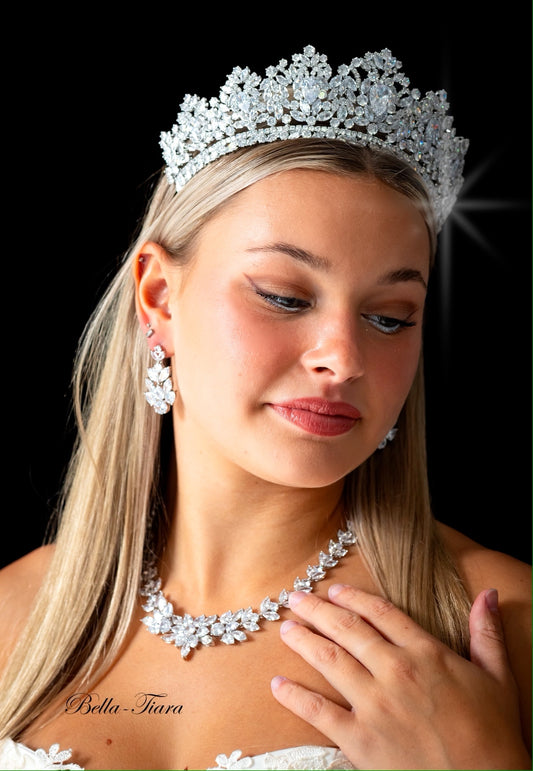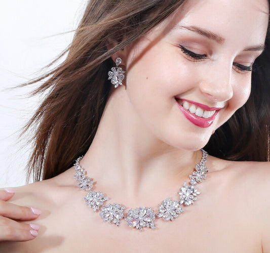 Leilani - Gorgeous floral cz statement wedding necklace set