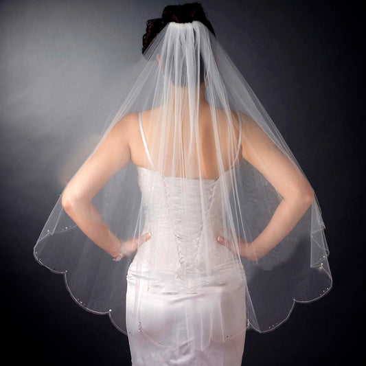 Leandra - Elegant fingertip Scalloped edge crystal wedding veil