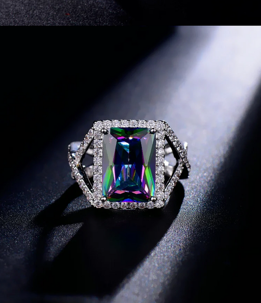 Amethyst with simulated diamond cocktail ring