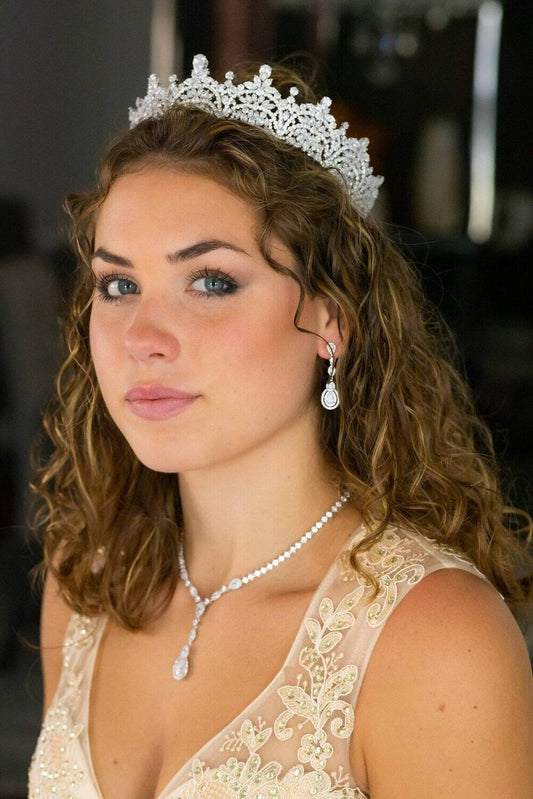 Princess Mia - Elegant Crystal CZ tear drop wedding necklace set