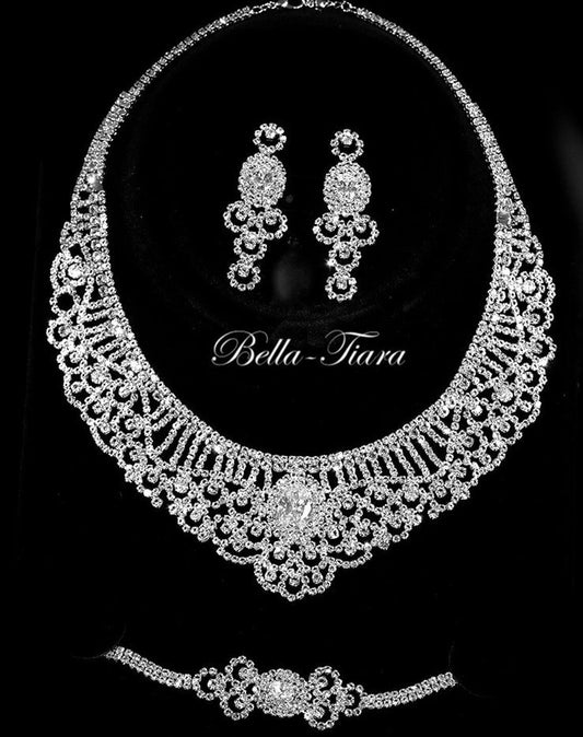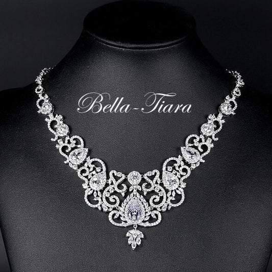 Princess Livia - Stunning simulated diamond crystal bridal necklace set