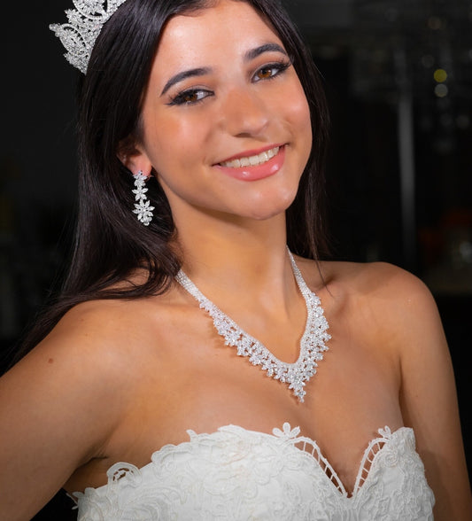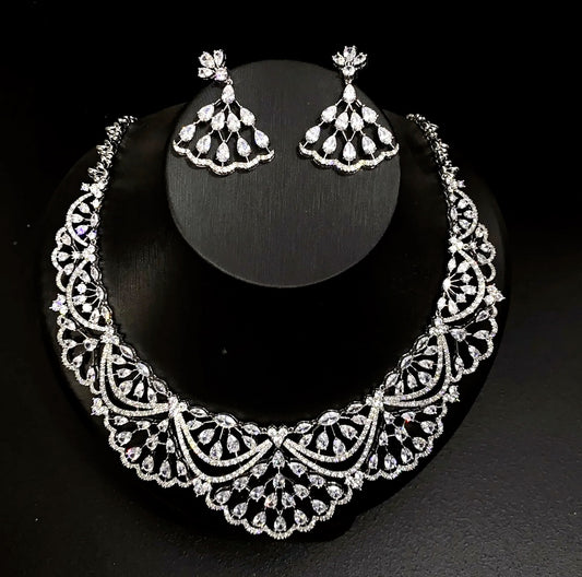 PrincessNara - Princess CZ wedding necklace set with bracelet