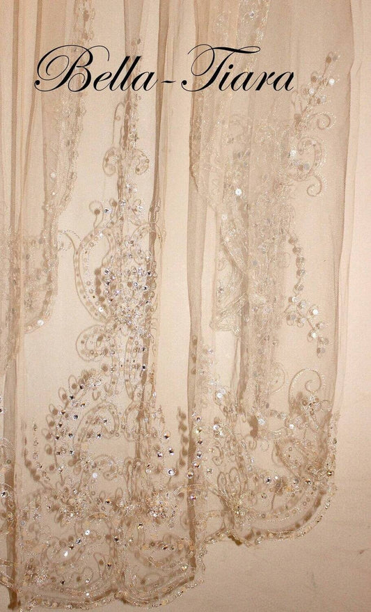 Princess Maria – Crystal beaded cathedral wedding veil - Free Blusher