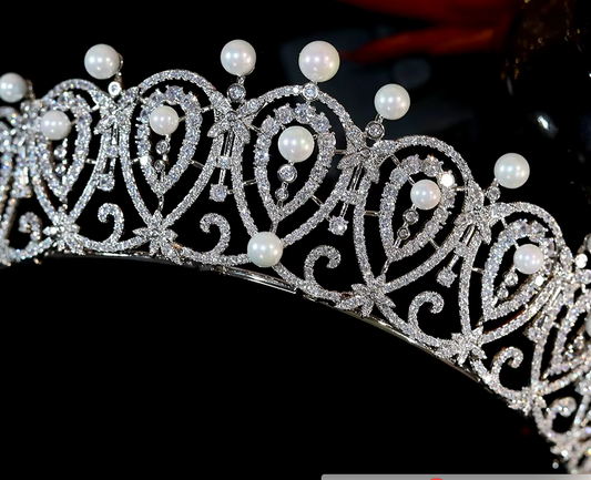 Princess Lorenza - Beautiful Crystal Pearl Wedding Tiara