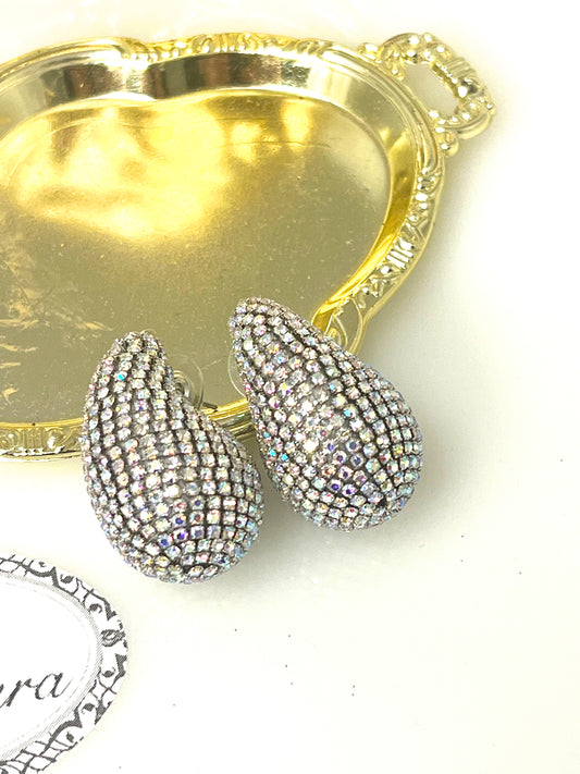 Skylar - Stone Crystal Paved Curved Teardrop Earrings
