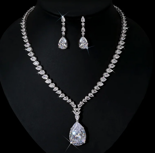 Stella - Gold plated CZ evening necklace set with free bracelet