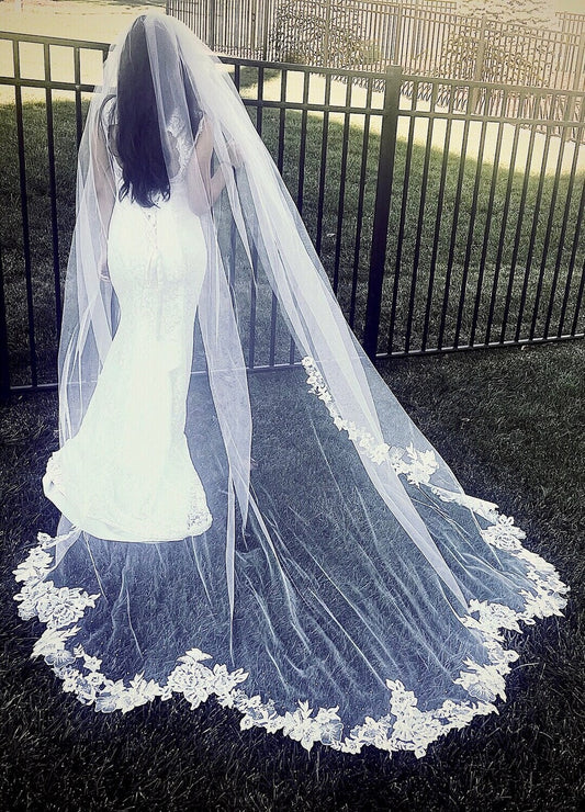 Veronica – Beaded crystal cathedral wedding veil with free blusher