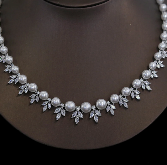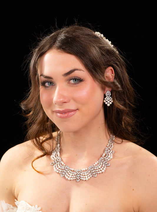 Vincenza - Enchanting crystal and pearl bridal necklace set