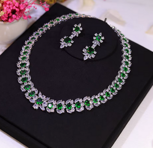 Zoe - Exquistite Swarovski emerald green crystal necklace set