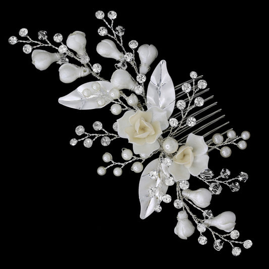 Zoe - Crystal porcelain rose flower bridal hair comb