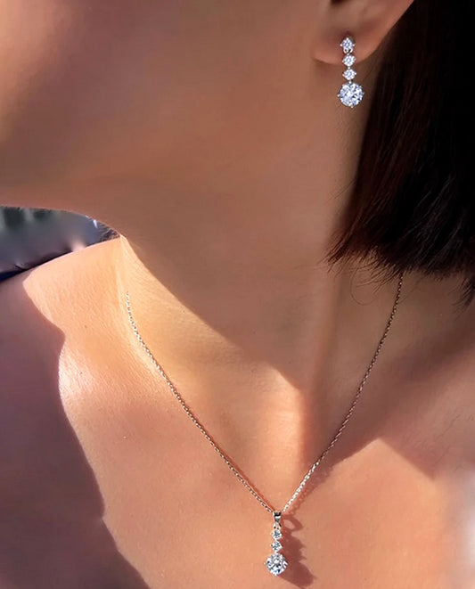 Argento - Silver .925 simulated diamond bridal pendant necklace set