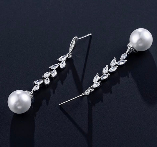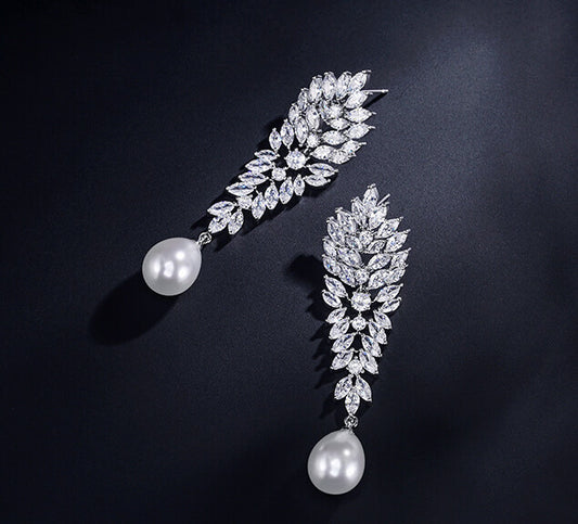 Elsa - CZ pearl bridal drop earrings