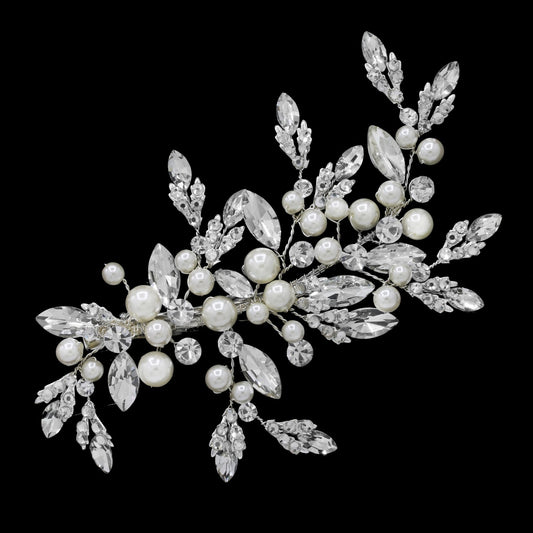 Rachel - Pearl crystal wedding spray clip hairpiece