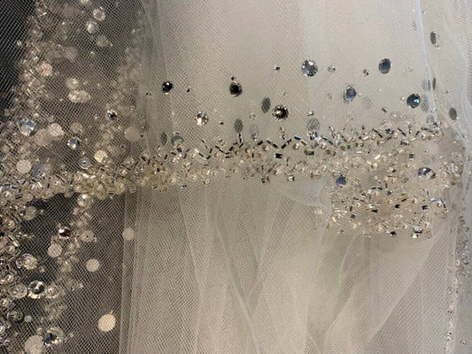 Dara – Beaded crystal and pearl edge cathedral wedding veil