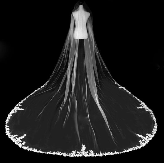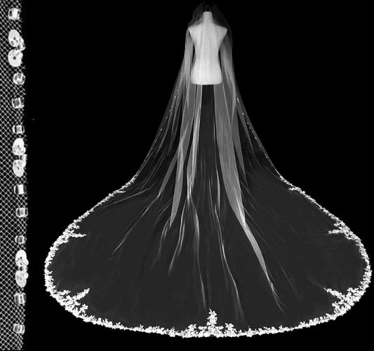 Monica – Crystal and pearl edge cathedral veil with - Free Blusher