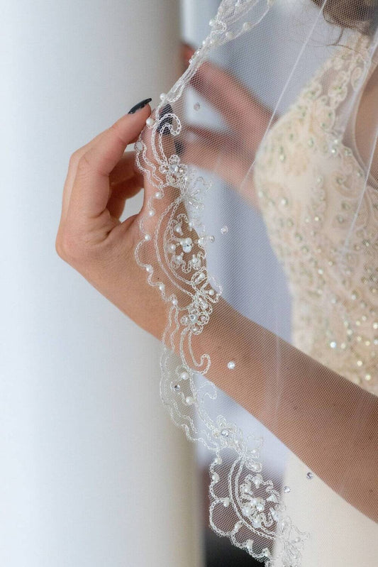 Brooklyn - Pearl, crystal beaded edge cathedral wedding veil - FREE BLUSHER