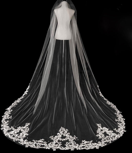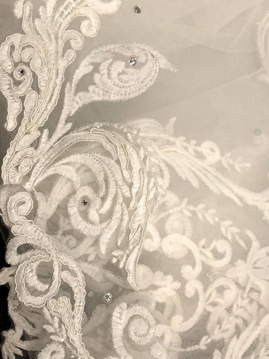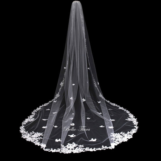 Fioramore - Beaded floral lace trim cathedral veil with Free blusher
