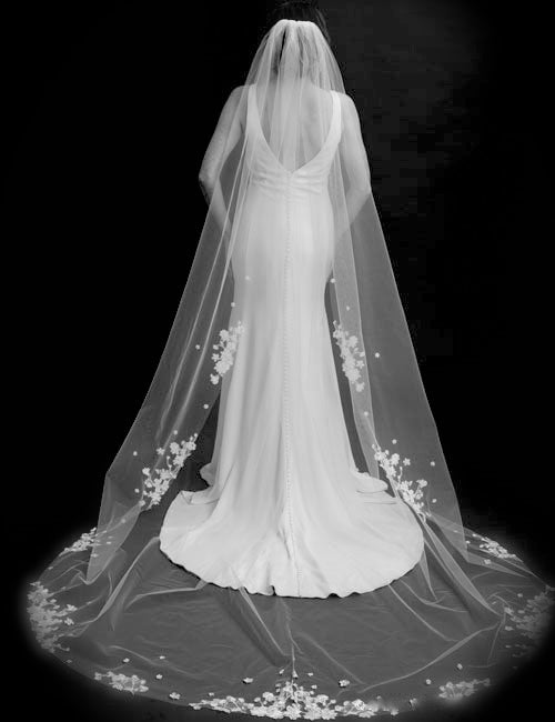 Dahlia, Italian flower lace cathedral wedding veil - Free blusher