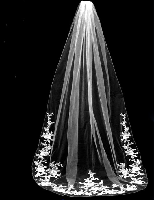 Ambrosia - Regal Cathedral Flower lace trim wedding veil