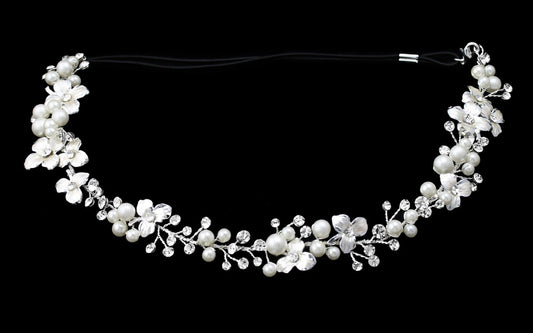 Flavia - Floral Swarovski crystal and pearl communion headband