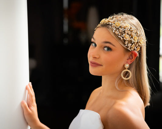Alluminata - Couture gold crystal wedding headband - ONE LEFT