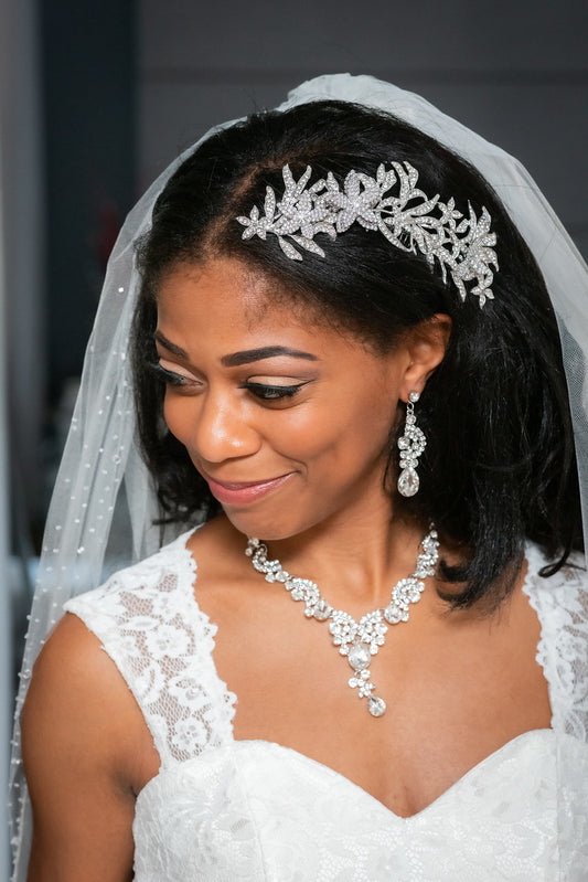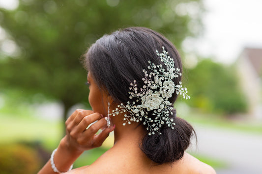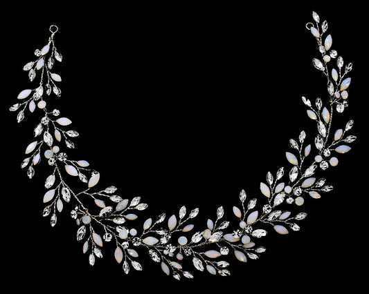 Opal - Beautiful silver opal crystal bridal hair vine-