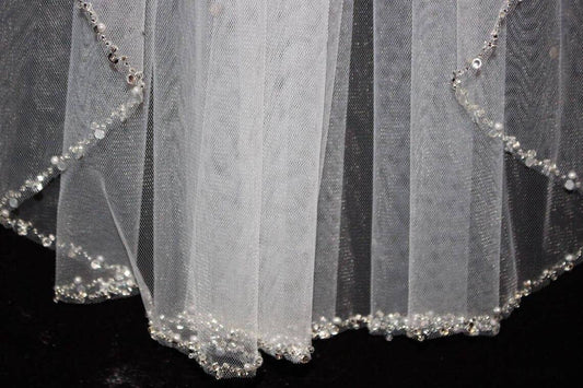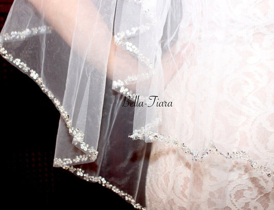 Brooklyn - Rhinestone, crystal and pearl beaded edge bridal veil - FREE BLUSHER