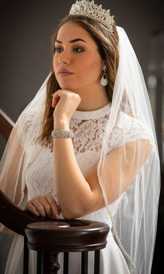 Brooklyn – Rhinestone, crystal and pearl two tier wedding veil with blusher