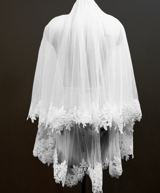 Brianna - Romantic 2 tier floral lace wedding veil with blusher
