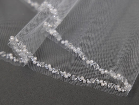 Brooklyn – pearl and crystal beaded edge wedding veil with blusher