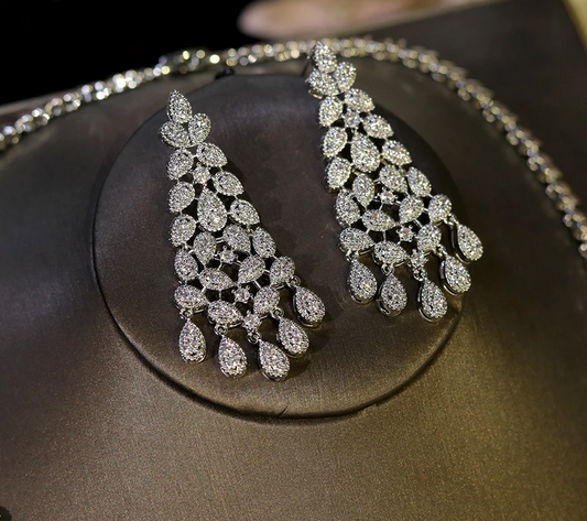 Paulette - Exquisite cz crystal drop bridal necklace set