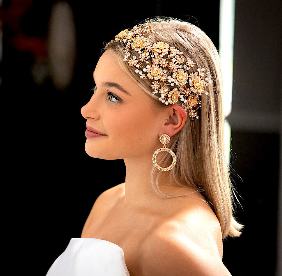 Alluminata - Couture gold crystal wedding headband - ONE LEFT