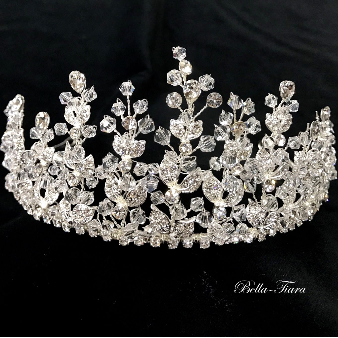 Superb bridal crown of clustered Swarovski crystals and rhinestone on