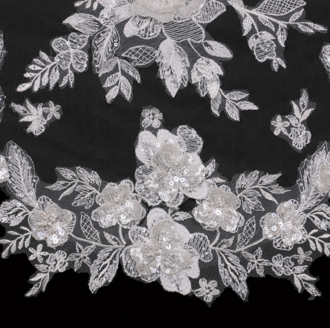 Absolutely Beautiful!!! Romantic, Elegant, just gorgeous scalloped edge English tulle veil with beaded floral lace edging, appliques and 3-D flowers