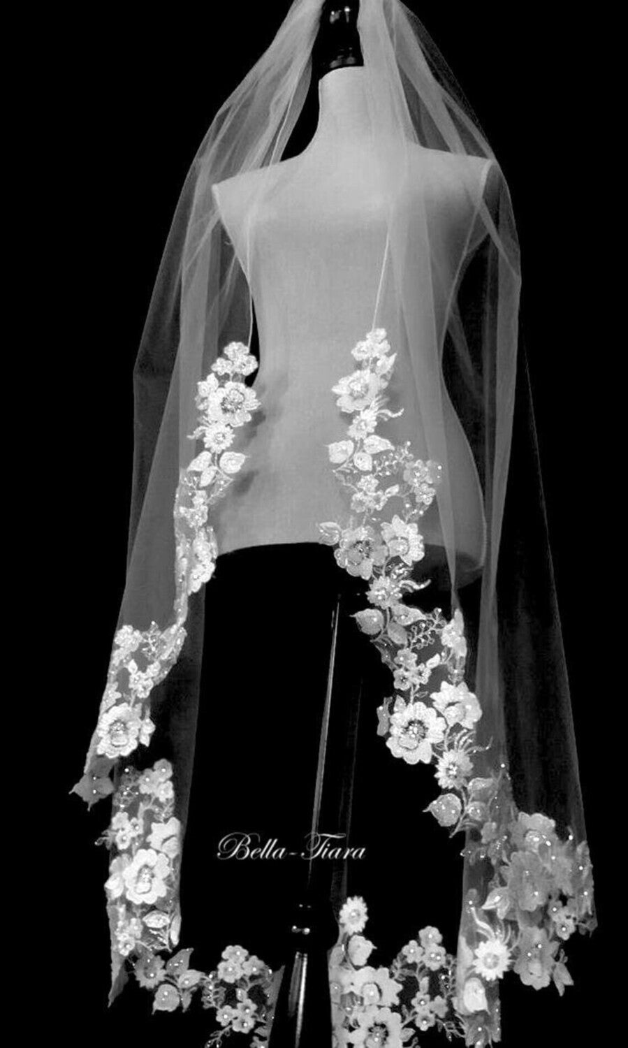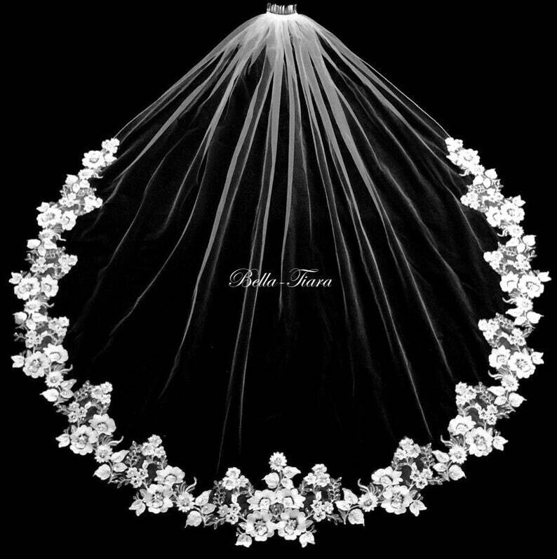 Absolutely Beautiful Stunning romantic French alencon lace beaded floral waltz length veil