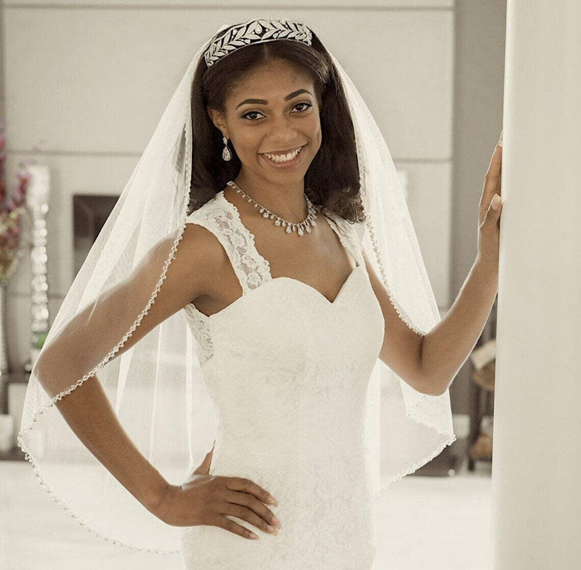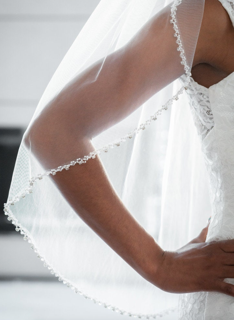 Carmelina – Enchanting Beaded pearl crystal edge wedding veil