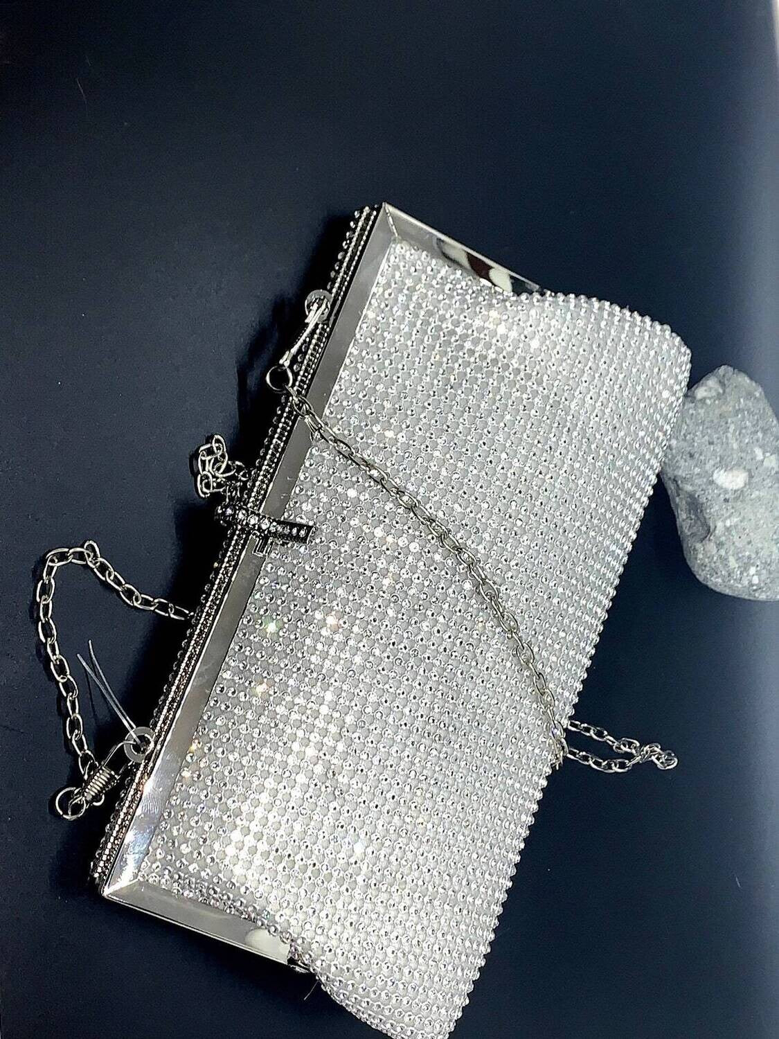 elegant crystal clutch purse perfect for all your essentials, soft and elegant removable chain satin lined. crystal all around, soft satin lined perfect for any size cell phone