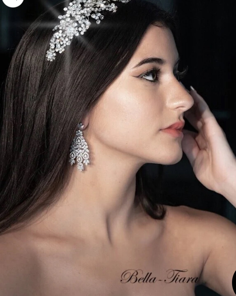 Lets welcome to Bella-Tiara's royal collection the stunning Claudia Swarovski Crystal chandelier earrings. elegance and glamour at its finest. Statement Swarovski drop with bold royal inspired look, exclusively at Bella-Tiara.
