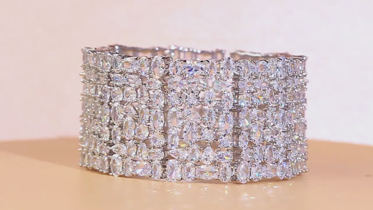 Cornelia - Glamorous simulated diamond crystal cuff bridal bracelet