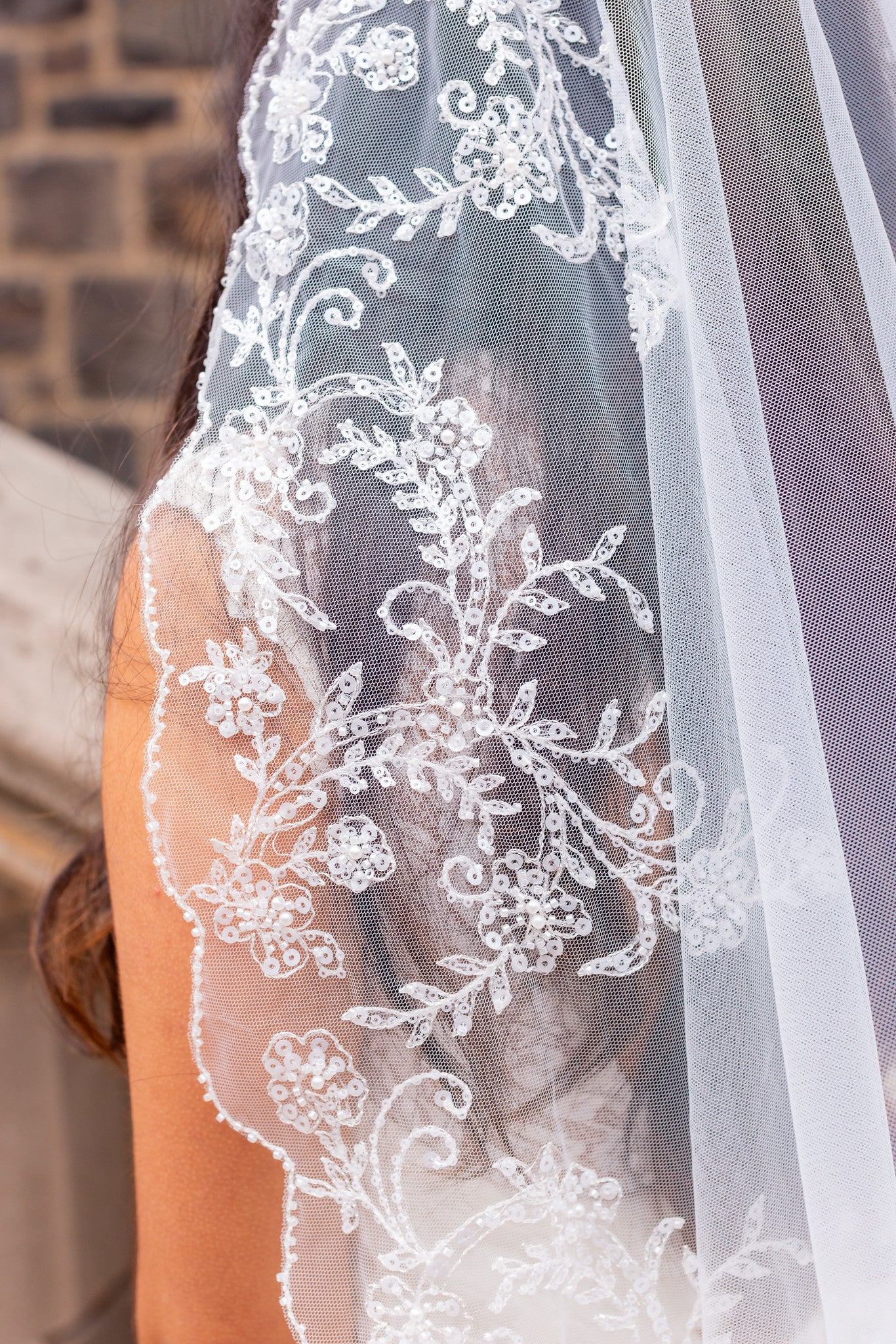 Beautiful, mesmerizing, exquisite, elegant beaded embroidered crystal and sequins wedding veil, scalloped beaded edge